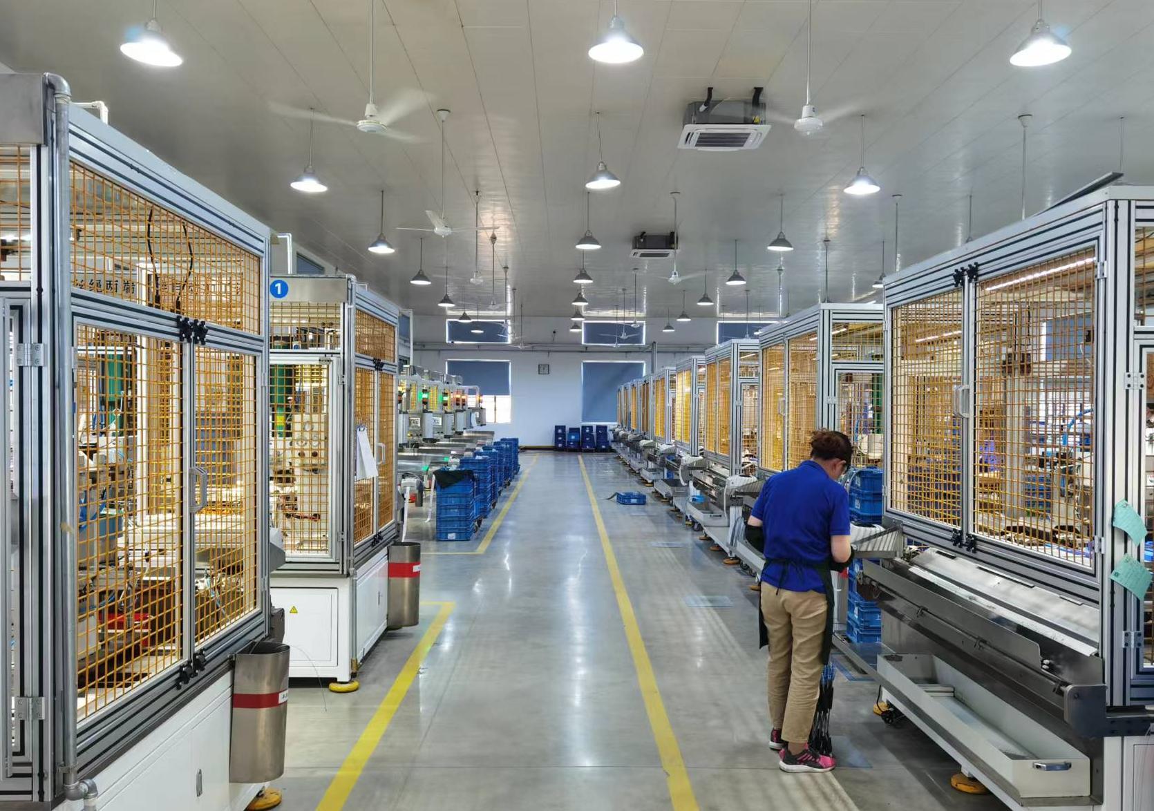Each finished piece exits in 3.5 seconds. The synchronized travel mechanism ensures every workpiece advances through cutting, riveting, and inspection stations with consistent positional accuracy, holding length tolerances to ±1 mm and exposed rope length to 1 mm ± 0.5.