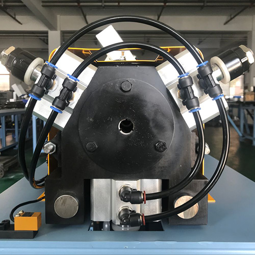 The 360° rotary cutting head combined with two-point clamping and controlled stretching produces a chip-free, burr-free cut. No secondary deburring operation is needed, which eliminates a process step and prevents metal chips from contaminating downstream refrigeration circuits. This is especially important for sealed HVAC systems where internal particulate can cause compressor failure.