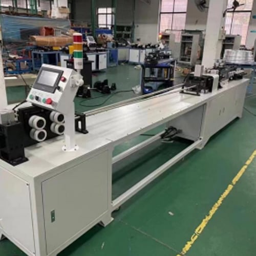 Nylon-coated straightening rollers and a U-shape rubber belt feeding system transport tubes through the machine without marking soft copper or aluminum surfaces. This is essential for pre-insulated air-conditioning lines where surface defects can compromise insulation adhesion or finished product appearance.