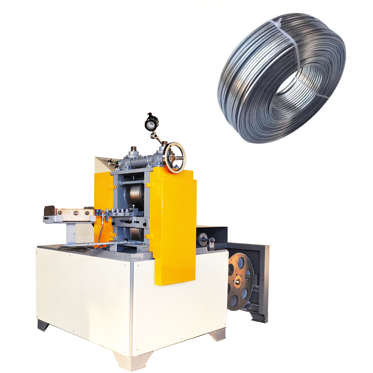 Industrial wire rolling machine that transforms round steel wire up to 1.7mm diameter into precise flat profiles for conduit manufacturing. Designed for manufacturers requiring consistent flat wire feedstock with minimal dimensional variation. Features hardened tool steel rollers and variable speed control for optimized production throughput.