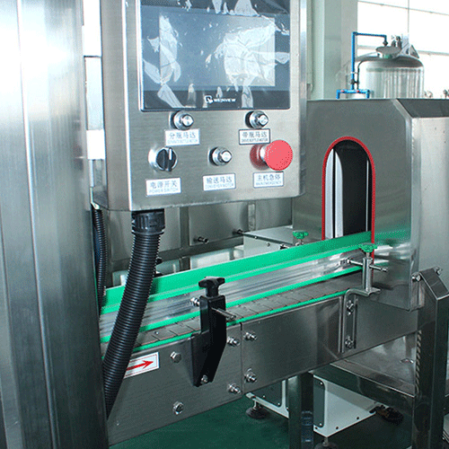Processes 150 bottles per minute through synchronized conveyor for continuous production flow
