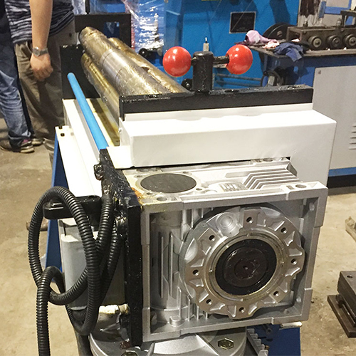A 1.5kW motor drives the rollers through a geared reduction unit, providing steady torque at low energy consumption. This makes the machine suitable for facilities with limited power infrastructure while still delivering the force needed to form mild steel up to 2mm thick at 245MPa yield strength.