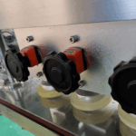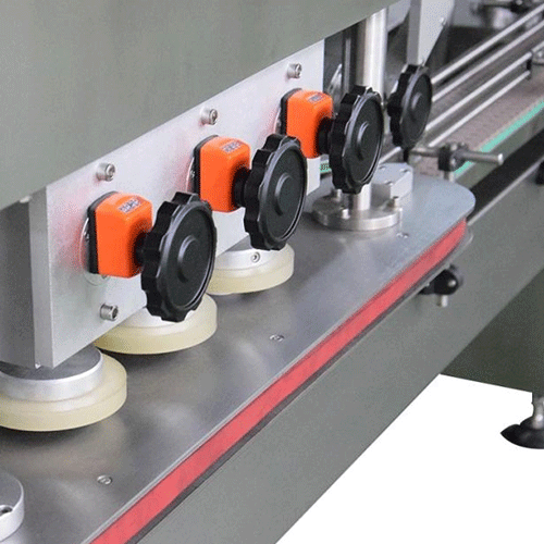 Three pairs of high-speed oscillating rubber wheels apply even rotational force to each cap, reducing wheel wear while maintaining uniform tightness. The optional torque control module lets operators set and verify unscrewing torque values, ensuring every sealed bottle meets quality standards before leaving the line.