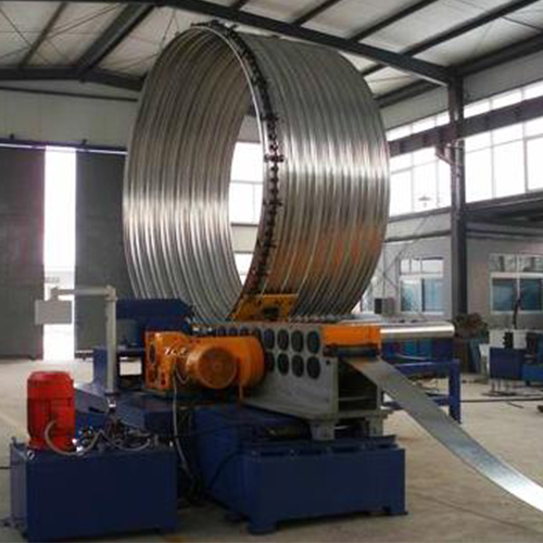 This automated forming machine enables manufacturers to produce large-diameter corrugated steel pipes for infrastructure projects with continuous spiral lock seaming technology. Designed for drainage culvert and post-tension duct fabricators requiring consistent output across multiple pipe sizes from a single production line.