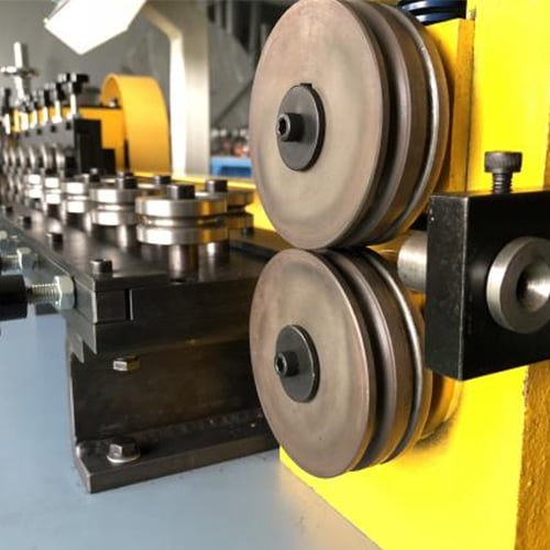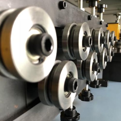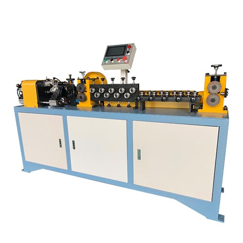 The straightening section uses multiple sets of adjustable rollers arranged on different axes to progressively remove coil memory from steel and Bundy tubes. This delivers uniform straightness across the full 4–8 mm diameter range, ensuring tubes fit correctly into fin packs and heat exchanger assemblies without manual correction.