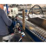 High-speed flexible duct production with PLC control and rapid diameter changeover.